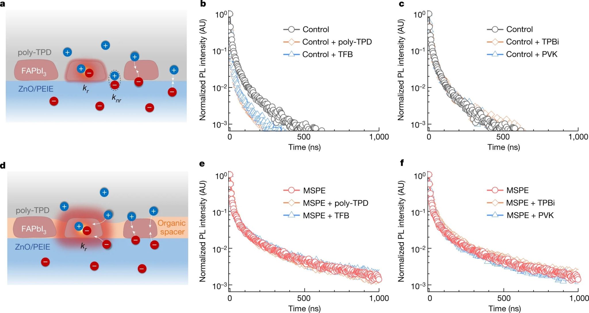 图四:钙钛矿/电荷传输层异质结的时间分辨光谱分析